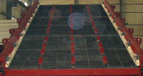 由于受承載振動強(qiáng)度及篩框結(jié)構(gòu)強(qiáng)度的影響,目前國內(nèi)各種振動篩不易做到大型化。我公司生產(chǎn)的分段篩是將篩子分成多段,經(jīng)過結(jié)構(gòu)優(yōu)化設(shè)計,在實現(xiàn)較大的振動強(qiáng)度效果時,每段篩子所需的振動應(yīng)力卻大幅下降,大大提高了篩子的篩分效果及可靠性。我公司生產(chǎn)的高效分段篩具有噪聲低,對廠房影響小的特點(diǎn),是一種環(huán)保型篩分設(shè)備。